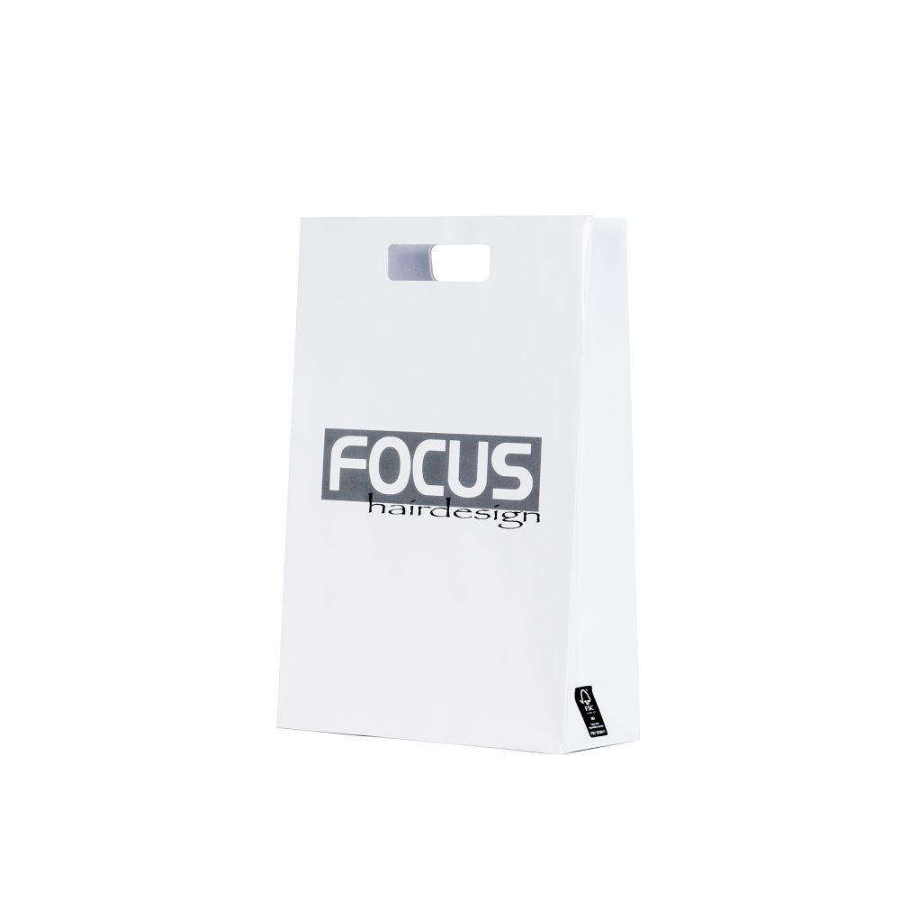 Luxe papieren draagtassen met uitgestanste handgrepen en versteviging in bodem en omslag